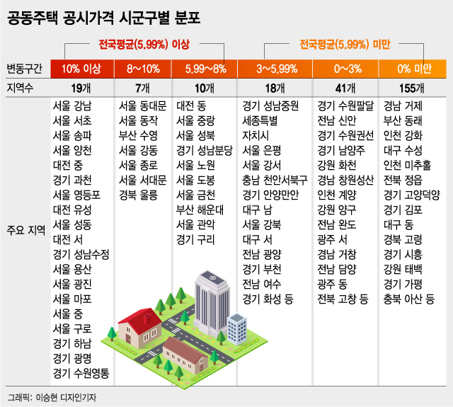 한편 경남 거제, 부산 동래 등 155개 시군구는 전년대비 아파트 공시가격이 하락했다.