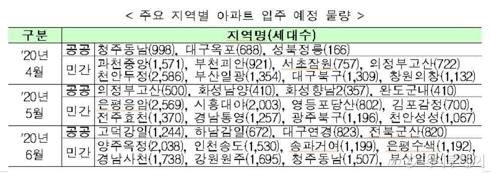 월별로 4월 2만1045가구, 5월 1만9439가구, 6월2만6899가구 입주 예정이다.