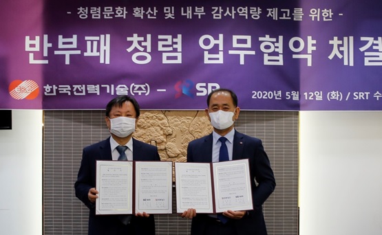 SRT(수서고속철) 운영사 SR은 12일 서울 강남구 수서역에서 한국전력기술과 '청렴·감사 업무 상호교류에 관한 협약'을 체결했다고 밝혔다.
