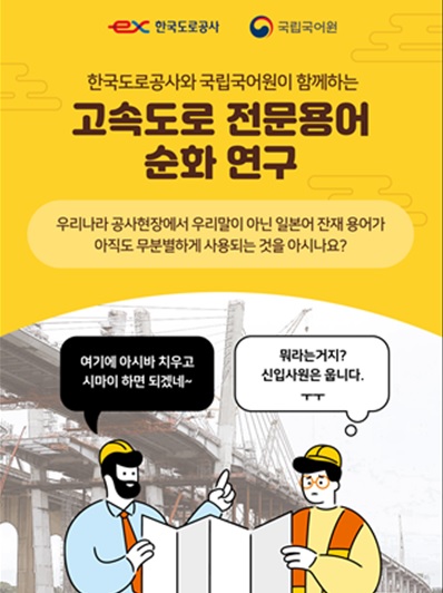 김일환 도로공사 건설본부장은 "도로건설 분야의 언어 순화를 통해 건설 근로자뿐만 아니라 국민이 편리하게 사용하고 이해할 수 있는 용어를 보급하고, 올바른 건설용어 사용에 대한 모범적인 모습을 보일 수 있도록 노력하겠다"고 말했다.