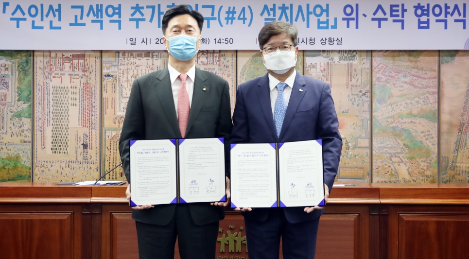 한국철도시설공단과 수원시는 2일 고색동 지역 주민의 역사 이용 편의성을 높이기 위해 수인선 고색역 출입구 추가설치 협약을 체결했다고 밝혔다.