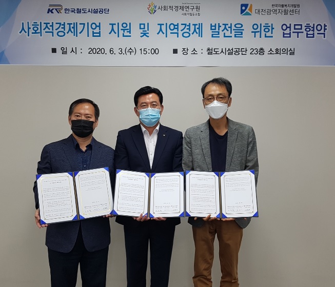 한국철도시설공단은 사회적경제연구원, 대전광역자활센터와 공동으로 사회적경제기업 지원 및 지역경제 활성화를 위한 업무협약(MOU)을 체결했다고 3일 밝혔다.