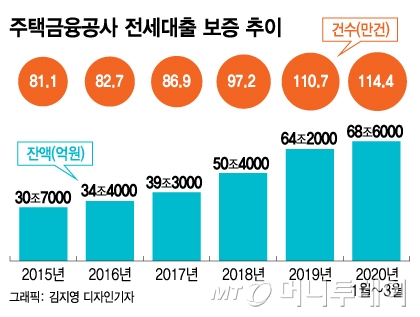 보증 기관 중 규모가 가장 큰 주금공의 전세보증 잔액은 올해 3월말 68조6000억원으로 4년 전 30조7000억원(2015년 말) 대비 2배 급증했다. 전셋값이 올랐다고는 해도 증가세가 예사롭지 않다. 공교롭게도 이 기간 '갭투자'도 폭발적으로 늘었다.