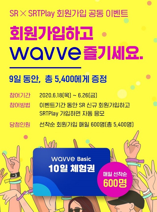 SRTPlay 신규고객 대상 26일까지 매일 600명 웨이브 무료이용권 증정
