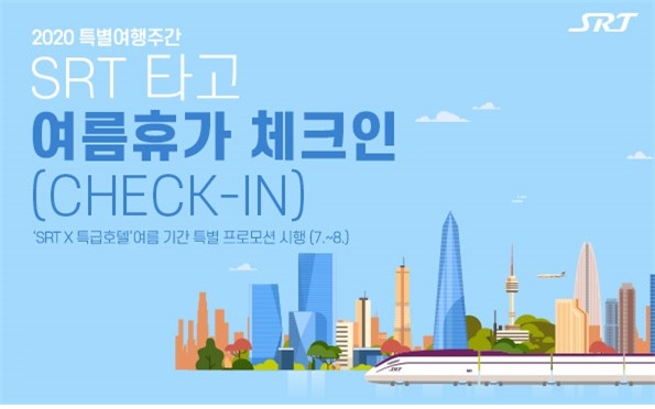SRT(수서고속철도) 운영사 SR은 다음 달 1~19일 특별여행주간에 맞춰 SRT 이용객을 대상으로 국내 호텔과 연계해 숙박 할인 등 'SRT 타고 여름휴가 체크인' 프로모션을 진행한다고 26일 밝혔다.