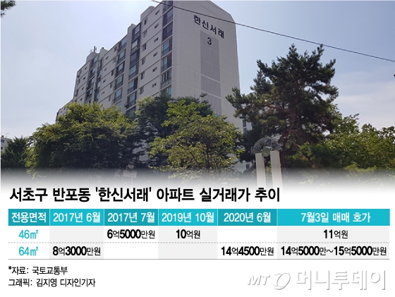 [재'택'크] 서초구 반포동 '한신서래', 3·7·9호선 고속터미널역 도보 거리에 서래마을 내 거주 만족도 높아… 노 실장 반포 아파트 평가차익 8억↑
