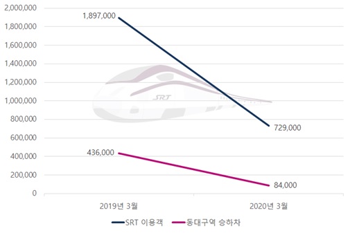 SR관계자는 "정부의 코로나19 위기경보가 심각 단계로 격상된 지난 2월23일 이후 하루평균 손실액이 10억원에 달하기도 했다"며 "코로나19 발생 이전에는 여행이나 친지방문 등으로 주말·휴일 탑승객이 평일보다 많았지만 사회적 거리두기가 본격화한 지난 3월 이후에는 주말·휴일 이용객이 평일보다 오히려 줄었다"고 설명했다.