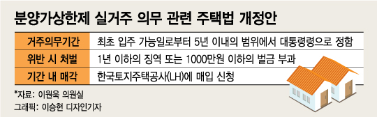 의무거주기간은 최초 입주가능일부터 거주해 5년 이내의 기간을 채워야 하며 집주인은 아파트 준공 직후부터 직접 들어가 살아야 한다. 거주의무를 위반하면 1년 이하의 징역이나 1000만원 이하의 벌금에 처해진다. 해외 체류 등 이주가 불가피한 사유 없이 거주의무기간 안에 이사 가려면 한국토지주택공사(LH) 등에 집을 팔아야 한다.