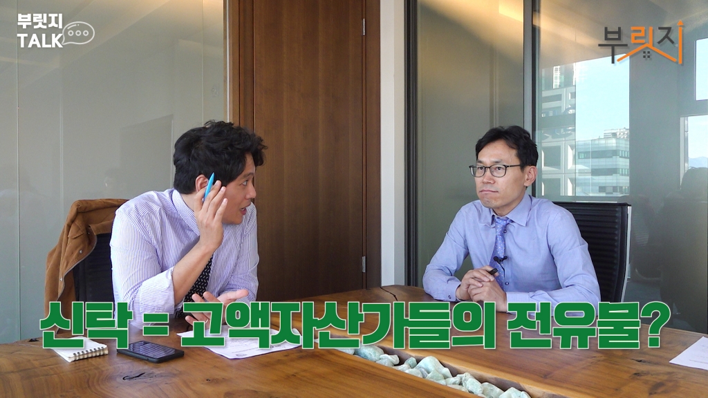 네. 그런데 여러분 신탁 문턱이 높다고 생각하시는 분들 많을텐데요. 꼭 고액 자산가 뿐만 아니라 주변에 아파트 한 채만 가지고 있어도 신탁 자문을 받을 수 있다고 해요. 이사님과 함께 알아볼 텐데요. 우선 신탁 개념에 대해 간단히 설명해 주시죠.