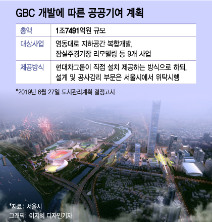 GBC 건립과 연계해서 진행하는 영동대로 지하공간 복합개발, 잠실주경기장 리모델링 등 9개 사업을 현대차그룹이 직접 수행하는 방식이다. 설계와 공사감리는 서울시에서 위탁시행한다.