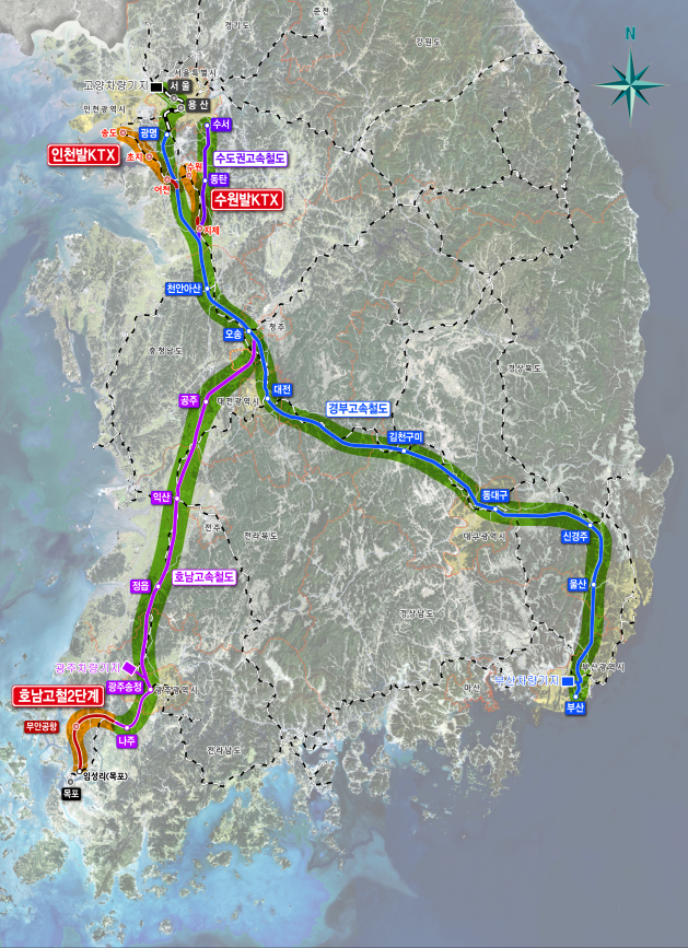 국토교통부는 20일 인천발·수원발 KTX 직결사업과 호남고속철도 2단계 사업 등 3개사업, 6개 공구 노반공사 시공업체가 선정돼 연내 착공한다고 밝혔다.