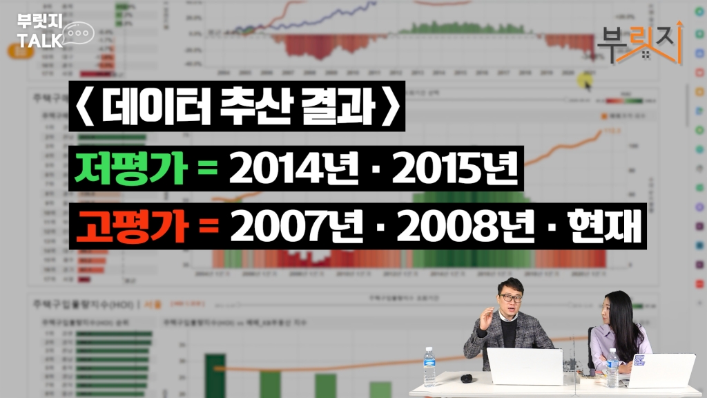 금리가 높아도 집값이 싸면 이자 부담이 적잖아요. 집값이 저평가된 거고. 그런데 지금은 사상 초유의 저금리에도 불구하고 이 숫자가 굉장히 안 좋아요. 서울아파트 가격이 굉장히 고평가 돼 있기 때문이에요. 제가 만든 저평가 데이터들이 공통으로 '2007~2008년은 고평가, 2014~2015년은 저평가다, 지금은 또다시 고평가돼있다'고 말합니다. 그래서 이런 것들을 보면 당장 뭔가 크게 하락할 가능성이 보이진 않지만 점차 에너지가 약화하고 있고 머지않아 변곡점으로 나타날 거라고 봅니다.