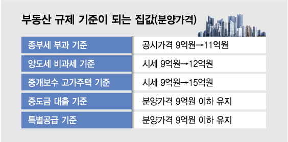 정부는 집값 상승을 인정하면서 종부세 부과 기준을 1주택자 기준 9억원에서 11억원으로 올렸고 최근 중개보수 고가주택 기준을 9억원에서 15억원으로 대폭 상향했다. 이 연장선상에서 분양가격 9억원으로 설정된 중도금 대출과 특공 기준을 현실화 할 필요가 있다는 목소리에 힘이 실린다.