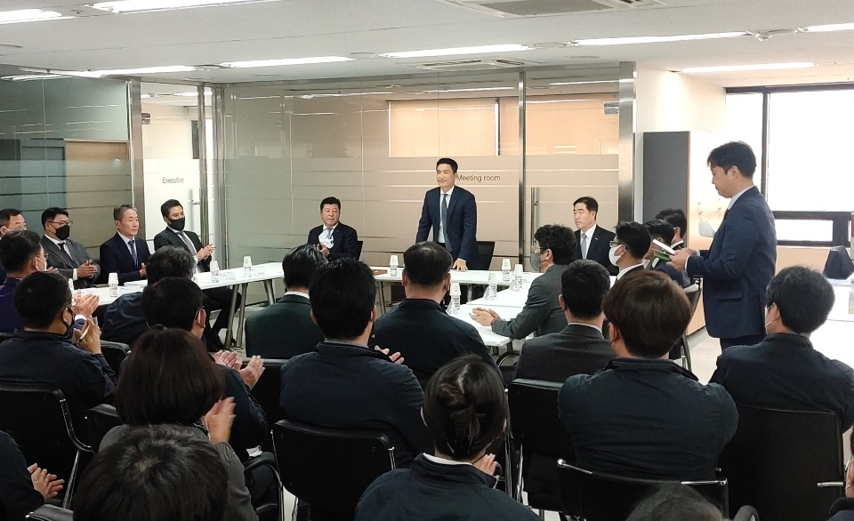 그는 같은 날 오후 '성지건설 임직원 간담회'에 참석해 일반 직원들과 첫 만남의 시간도 가졌다. 간담회에는 이용승, 김현경 공동 대표를 비롯한 성지건설 전 임직원과 대우조선해양건설 본사 고위 임원 및 관계자들이 참석했다.
