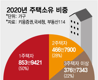 다주택자 주택이 전체 주택의 50%라는 점을 고려하면 다주택자 매물이 극히 적었다고 해석할 수 있다. 2020년 2주택자 주택은 466만7900가구, 3주택 이상은 376만7343가구로 각각 전체의 28%, 22%에 달했다. 우리나라 총 주택의 절반을 갖고 있는 다주택자가 정작 시장에는 고작 5% 밖에 안 내놓은 셈이다.