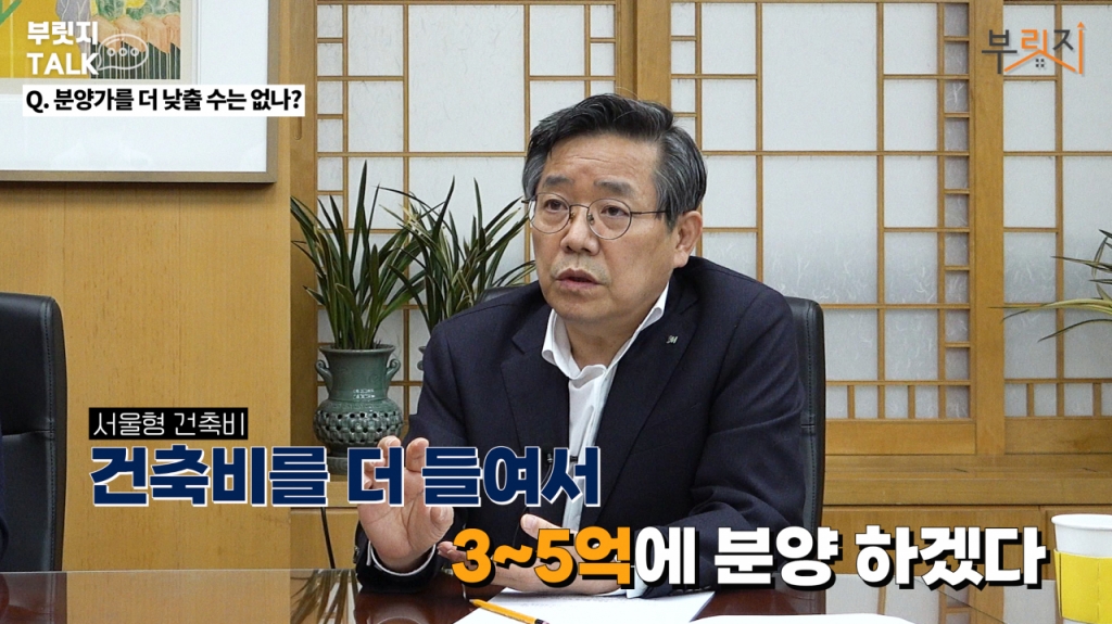 아닙니다. 잘못 알려진 건데요. 요지는 뭐냐면 우리가 분양 원가를 공개해보니 25평짜리 아파트를 짓는데 건축비가 1억5000만원이 듭니다. 아무리 잘 줘도 (공사비가) 2억 정도밖에 안 들어가는데요. 그거를 알아야 시민도 '25평 분양가가 3억원도 충분하겠구나' 생각하겠죠. 그러기 위해서 분양원가를 공개하는 거예요. 분양원가를 공개해서 제가 거품을 어떻게 뺍니까? 민간보고 분양원가를 공개하라고 할 자격도 없고요. 단지 SH공사는 1000만 서울 시민 한 사람 한 사람이 주인이니 당연히 아셔야 할 걸 그냥 알려드리는 것뿐입니다.