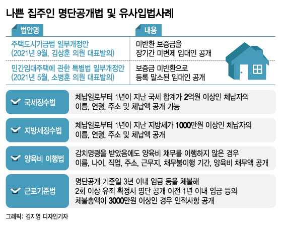 다만 윤석열 정부가 '나쁜 임대인 정보 공개'를 국정과제로 추진키로 해 관련법 개정에 속도가 날 전망이다. 업계 관계자는 "전세보증 가입을 적극 장려하고 있지만 정작 돈을 떼 먹을 가능성이 높은 임대인 명단이 공개되지 않고 있다"며 "전세금이 전 재산일 수 있는 신혼부부와 청년층의 재산권 보호 차원에서도 명단 공개가 필요하다"고 말했다.