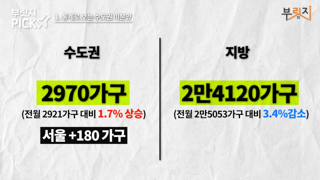 안녕하세요. 부릿지 조한송 기잡니다. 오늘은 수도권에서 늘어나는 미분양 소식을 가지고 왔습니다. 전국으로 봤을 때 미분양 주택이 줄고 있지만 수요가 가장 높은 서울과 경기 일부 지역에서는 미분양 주택이 늘어나는 것이 최근 특징인데요. 미계약이 늘어나고 당첨 가점이 낮아지는 청약 시장 분위기를 정리해봤습니다. 미분양주택수 추이는 향후 주택시장의 분위기를 살펴볼 수 있는 선행지표라고 볼 수 있겠죠. 오늘 영상 끝까지 주목해주세요.
