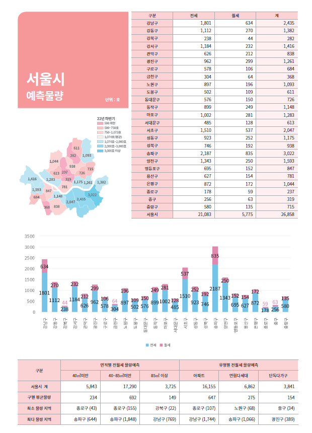 기존에도 여러 기관에서 전·월세 시장관련 지표를 제공하고 있지만 주택 거래나 계약 등에 지식이 없는 경우에는 유의미한 자료를 찾아내는 데 한계가 있었다. 하지만 시가 내놓은 분석 자료는 서울 시내 주택 매매와 전·월세 실거래 신고 자료를 토대로 누구나 알기 쉽게 해석해 수치, 도표 등 시각자료와 함께 제공된다.