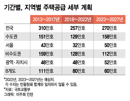 8일 국토교통부에 따르면 2027년까지 계획한 전국 270만호 주택 공급 물량 중 공공택지와 국공유지 등 정부가 직접 공급 물량을 조절할 수 있는 규모는 약 88만호 수준이다. 나머지 182만호는 사실상 민간의 몫이다. 52만호는 재개발, 재건축 등 정비사업이며 130만호는 도시개발 등 민간이 자체 추진하는 사업을 통해 공급하게 된다.