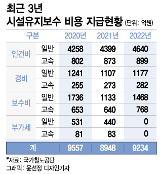 철도공단은 매년 1조원에 가까운 비용을 코레일에 유지보수 댓가로 지급한다. 하지만 안전투자는 제대로 이뤄지지 않고 있다. 1조원 중 70~80%가 인건비·경비로 쓰일 정도로 코레일은 인력 중심 구조다 보니 보수비를 늘리는 안전 투자에는 소극적일 수 밖에 없다. 두 기관 사이에 유지보수 원가나 이력관리 공유도 이뤄지지 않는 상황에서 철도공단의 적극적인 투자도 기대하기 어려운 상황이다.