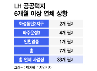 16일 한국토지주택공사(LH) 등에 따르면 LH가 공급한 공공택지를 낙찰받은 건설·시행사가 잔금을 못 내 연체된 사업장은 총 33개 필지로 이 중 6개월 이상 연체된 필지가 7개에 이른다. 6개월 이상 연체가 되면 계약 해지 요건이 돼, 계약 해지 위기에 놓인 사례가 7건에 이르는 셈이다.