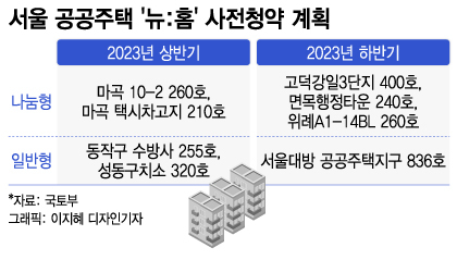 서울에서는 동작구 수방사 부지 외에도 △마곡 102 260가구 △마곡 택시차고지 210가구 △고덕강일3단지 400가구 △면목행정타운 240가구 △위례A1-14BL 260가구 △성동구치소 320가구 △서울대방 공공주택지구 836가구 등이 연내 사전청약을 실시한다. 일반형으로 계획된 성동구치소와 서울대방 공공주택지구를 제외하면 모두 나눔형으로 공급될 전망이다.