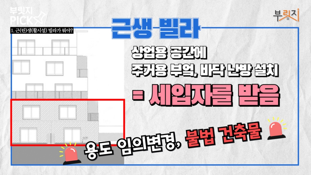 이에 근생 빌라 양성화 목소리가 꾸준히 나오고 있지만 정부가 불법 건축을 양산한다는 비판도 만만치 않은데 ☞머니투데이 부동산 유튜브 채널 '부릿지'가 계약 전 근생 빌라를 확인하는 방법과 대책을 알아봤다.