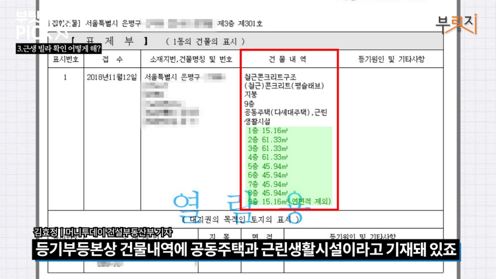 확실한 건 건물의 특징이 기재된 서류겠죠. 임대차 계약 전 주로 확인하는 등기부등본에는 몇 층이 근생시설인지 정확히 나오지 않습니다. 층별 용도를 확인하기 위해서는 건축물대장을 살펴보는 게 좋습니다. ☞자세한 내용은 머니투데이 부동산 유튜브 채널 '부릿지'에서 확인할 수 있습니다.