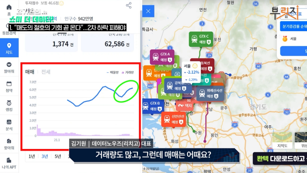 최근 일부 지역의 반등 실거래, 호가 상승은 급매물 소진과 금리 동결에 따른 집값 상승 기대감 때문인 것으로 풀이된다. 김기원 리치고(데이터노우즈) 대표는 이 반등은 일시적일뿐이라고 단언한다. 그는 "진짜로 집값이 오른다면, 더 오르고 팔아야죠. 지금 왜 파나요?"라고 반문하며, 진짜 하락장이 오고 있다고 단언하는데, ☞머니투데이 부동산 유튜브 채널 '부릿지'가 김기원 대표와 함께 일시적 반등 후 진짜 하락이 오는 이유와 '영끌족'이 알아야할 매수 타이밍까지 짚어봤다.
