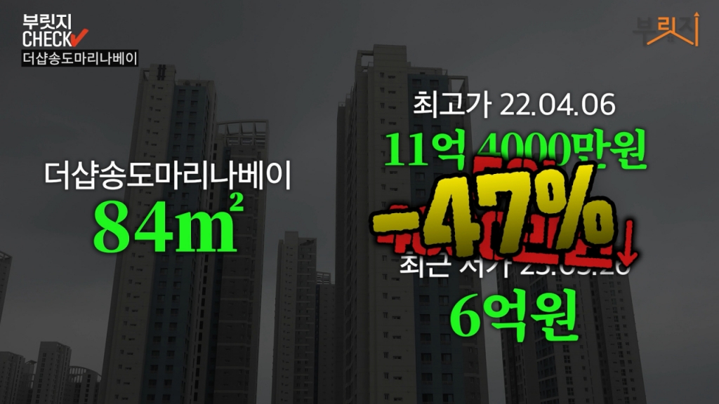 인천광역시 연수구 송도동 송도국제도시는 인천 지역의 강남, 서울을 제외한 수도권 대장지역으로 꼽힌다. 실제 부동산 호황기 이 지역의 집값은 서울의 주요 지역만큼이나 올랐다. 그러나 금리 인상과 경기 침체로 인한 부동산 한파에 송도국제도시의 아파트 가격은 절반이 넘게 폭락했다.