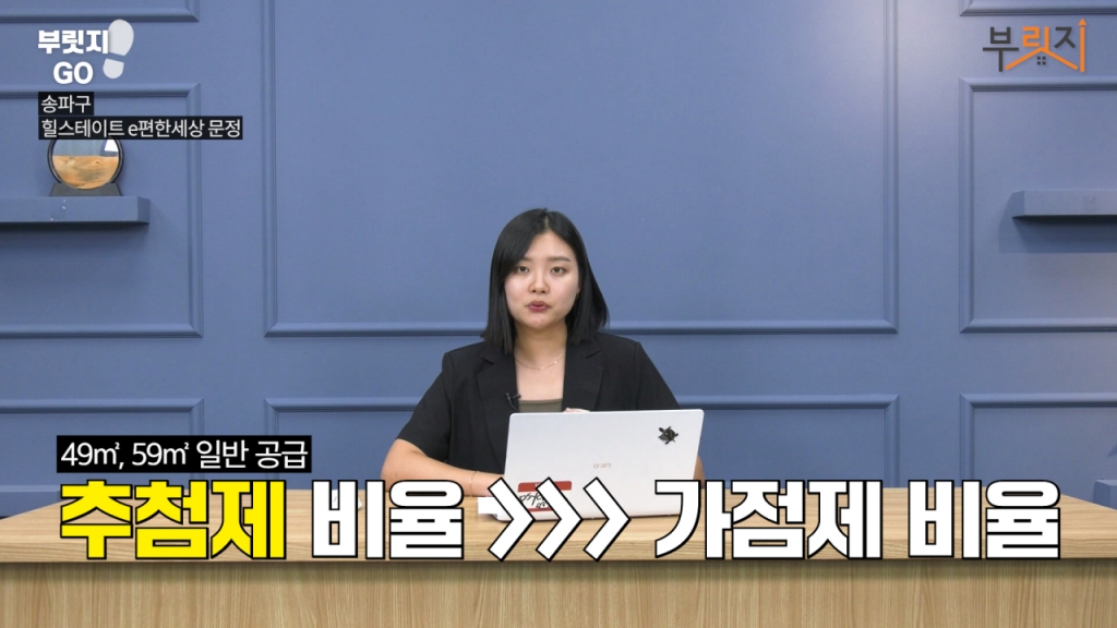먼저 저희가 방문한 힐스테이트 e편한세상 문정을 좀 더 상세하게 설명드리면요. 시공은 현대엔지니어링과 DL이앤씨가 맡았고 총 1265세대 중 296세대가 8월 중 일반분양으로 나올 예정입니다.