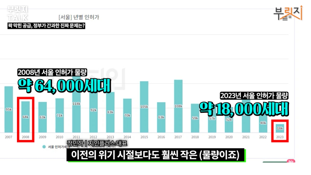 지금 시장을 보시는 많은 분이 가장 걱정하는 게 공급 문제입니다. 적은 공급이 계속 이어진다면 2~3년 뒤에는 또 다른 폭등이 일어날 수 있다. 그런 걱정들이 많은 것 같은데 좀 대표님이 데이터로 한번 공급이 좀 어떤 문제가 있는지 한번 봐주실 수 있을까요?