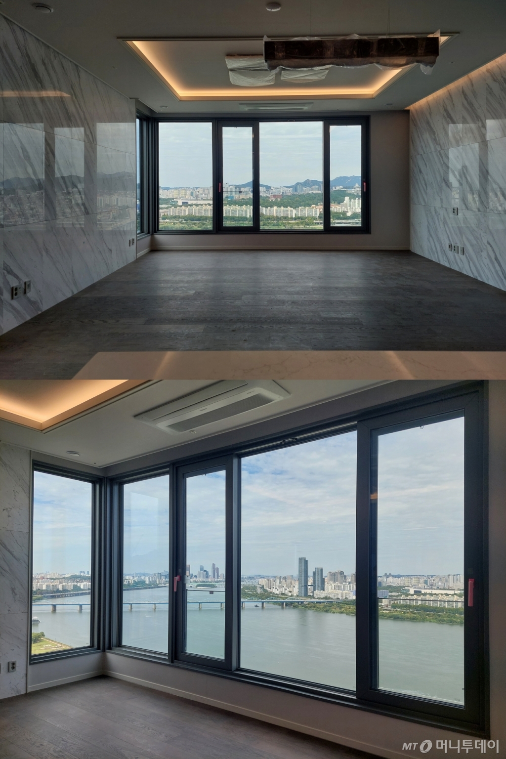 세대 내부에서도 한강뷰는 펼쳐진다. 전용 116㎡ 내부에 들어가면 거실 통창 너머로 반포대교와 세빛섬이 모습을 드러낸다. 이 세대는 4베이로 안방과 방에서도 한강을 조망할 수 있다. 전용 234㎡ 펜트하우스는 비가 갠 뒤 날씨가 맑아 반포대교 건너편 용산 이촌동과 한남동, 남산과 여의도까지 파노라마처럼 펼쳐졌다. 전용 185㎡ 펜트하우스 보류지 입찰 기준가는 126억원에 달한다. 올 1월 전용 200㎡ 펜트하우스 입주권은 100억원에 손바뀜돼 화제가 되기도 했다.