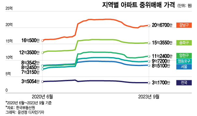 정책의도와 달리 집값은 오히려 더 올랐다. 한국부동산원 '지역별 아파트 중위매매 가격(2020년 6월~2023년 9월)' 자료를 분석한 결과, 서울 아파트 중위가격은 8억4000만원에서 8억5000만원으로 1.9% 올랐는데 이 기간 목동이 포함된 양천구는 무려 36.3% 치솟았다. 같은 기간 여의도가 있는 영등포구는 32.9%, 전체 지역의 42%가 토지거래허가구역으로 묶인 강남구는 28.8%, 잠실을 품고있는 송파구는 24.3% 올랐다. 이 기간 전국 아파트 중위가격은 3억5000만원에서 2023년 9월 3억1700만원으로 오히려 9.6% 내렸다. 서울-지방 사이는 물론, 서울 내에서도 쏠림현상이 더 심화된 것이다.