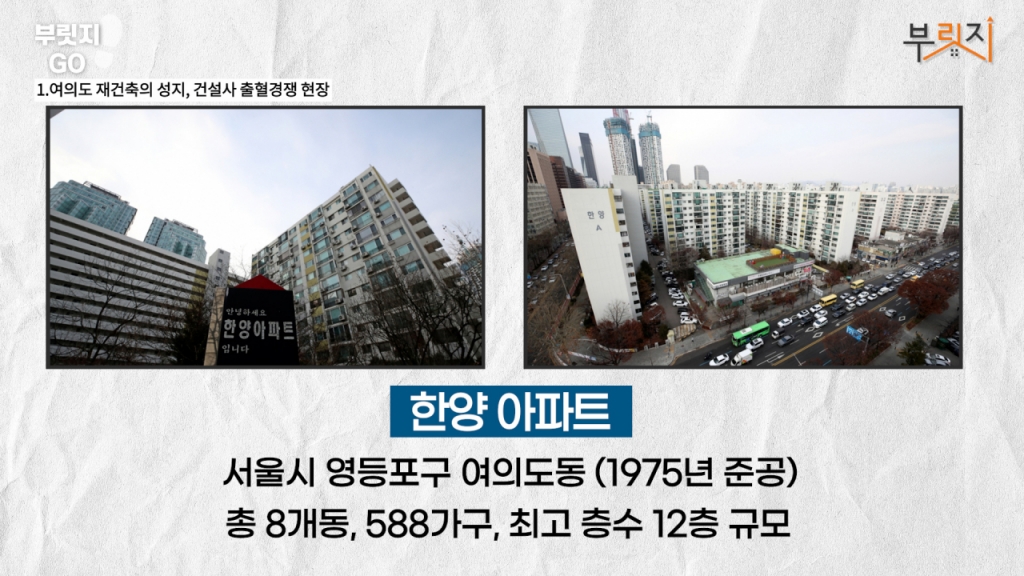 여의도 재건축의 1번지 자리를 뺏길 위기에 놓인 한양아파트의 재건축 사업이 암초를 만나 멈춰선 건 재건축 사업이 얼마나 힘든지 여실히 보여주고 있습니다. 이곳에 무슨 일이 일어난건지 부릿지가 알려드립니다!