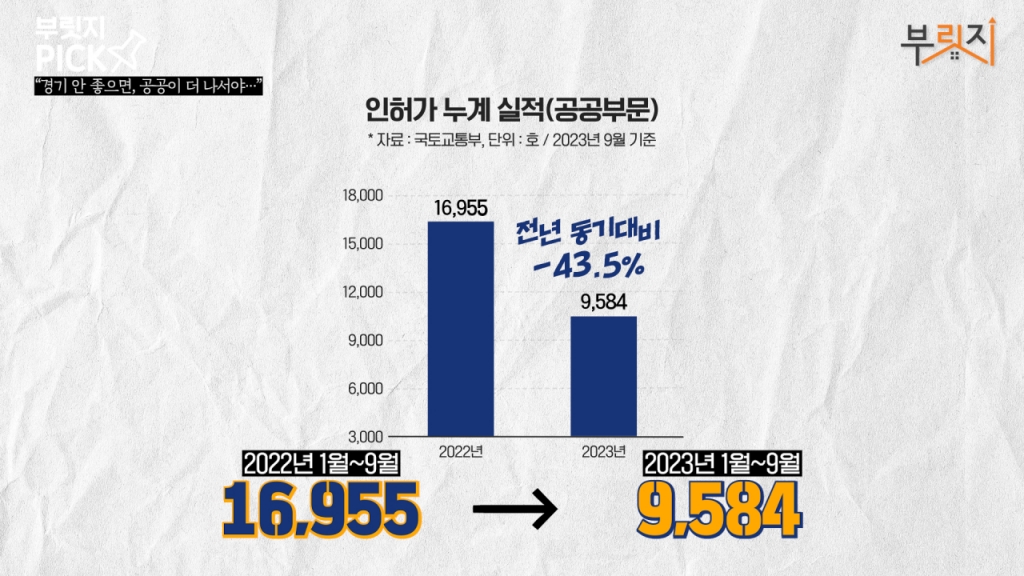 대대적인 경기 침체 여파는 건설 경기에도 불어닥쳤습니다. 부동산 시장의 부진까지 더해져, 사실상 민간에서는 공급을 미룰 때까지 최대한 미룰 수밖에 없죠. 공공이 시장의 부진을 보완해야 하지만 오히려 민간보다 부진한 실적에 공급 대란 우려가 더 불거지고 있습니다. ☞자세한 내용은 머니투데이 부동산 유튜브 채널 '부릿지'에서 확인할 수 있습니다.