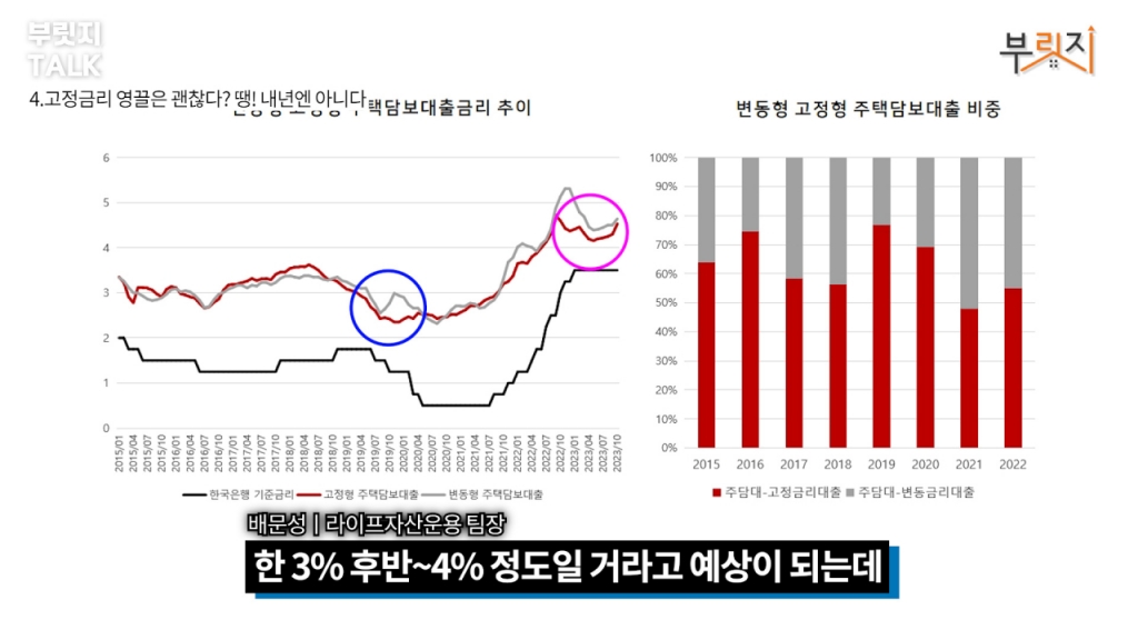 실제 금리 하락에 따른 집값 반등 시나리오가 가능할지는 미지수다. 배문성 라이프자산운용 팀장은 "시장금리의 큰 흐름을 예측하긴 어렵지만, 부동산 시장의 반전을 이끌만큼 하락은 불가능하다"고 단언했다. 오히려 그간 변동금리의 상승을 보며 안도하던 고정금리 대출자들의 이자가 돌연 상승할 수 있다고 지적했는데, ☞머니투데이 부동산 유튜브 채널 '부릿지'가 2차 영끌족발 급매 대란이 벌어질 수 있는 내년 부동산 시장을 전망했다.