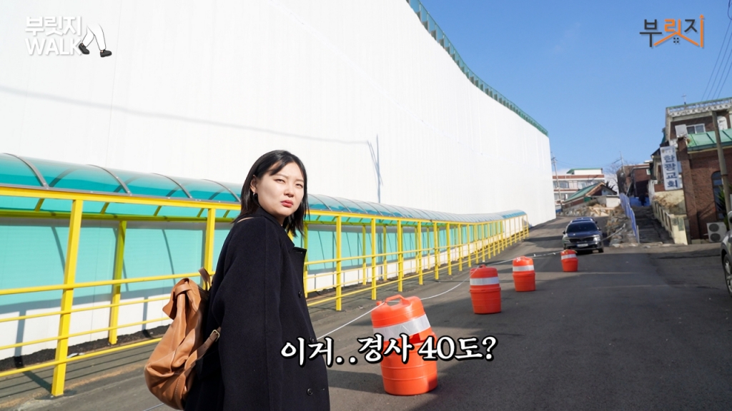 4구역 단지와 5구역 단지의 가장 큰 차이점을 보여드리려고 단지 뒤쪽으로 걸어가고 있습니다. 그런데 지금 생각보다 경사가 너무 심해서 조금 당황스럽습니다. 단지 내부는 평탄화 작업을 진행할지 모르겠지만 앞에 있는 언덕길까지 정리가 될 지는 잘 모르겠어요.
