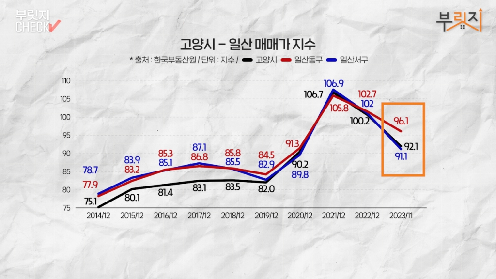 한국 부동산 시장의 지표인 서울이 이러한 상태니, 수도권을 비롯한 전국의 분위기는 쉽게 짐작할 수 있습니다. 특히 1기 신도시는 재건축 특별법 기대감에 시장 전체가 요동치고 있습니다. 이번에 저희가 찾아간 일산은 극히 일부 재건축 연한이 도래한 단지를 제외하곤 연말 이후 집값이 급격히 내려가고 있는데요. 사실 재건축 단지들도 버티기에 급급하다는 이야기도 나옵니다. 부릿지가 직접 찾아가 알아보는 코너, 2024년 첫 번째 경기도 고양시 일산 신도시의 집값을 체크해드립니다!