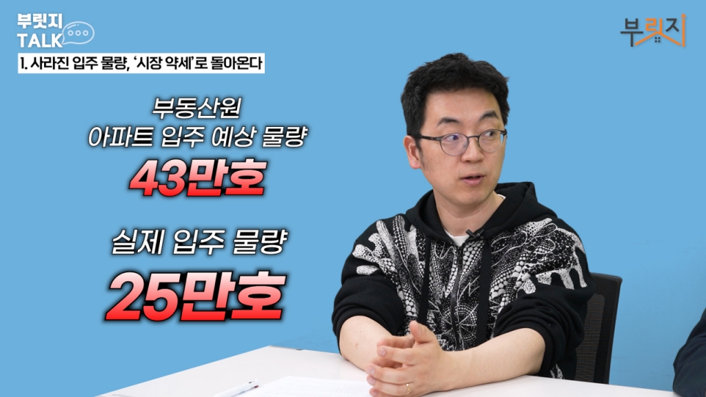 입주 물량이 생각보다 작년에 굉장히 저조했어요. 사실은 많은 분이 작년에 분양이 너무 적었기 때문에 2026년이나 2027년에 입주가 적다고 생각하면서 입주 대란이 온다. 이런 얘기들을 많이 하시는 것으로 알고 있는데요. 근데 최근에 여기 시장에서 반영 못 한 것 중에 부동산 입주를 예측할 때 어떻게 예측하냐면 입주자 모집 공고문 보고 예측하거나 아니면 그러니까 입주자 모집공고 보고 예측하거나 그런 방식으로 하거든요. 아니면 착공 데이터 플러스 3년으로 예측하거나 그런데 실제로 그거가 작년에 많이 틀렸어요. 부동산원도 43만호 아파트 입주 생각했었는데 실제로는 25만호 들어왔고 서울도 작년에 3만3000호 아파트 입주였는데 실제는 1만3000호 들어왔거든요.