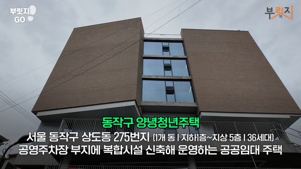 서울 동작구 상도동 275번지에 들어선 양녕청년주택은 공영주차장 부지에 복합시설을 신축해 운영하는 공공임대주택입니다. 지하1층은 주차공간이 부족한 지역 특성을 고려해 거주자우선주차장으로 활용됩니다.