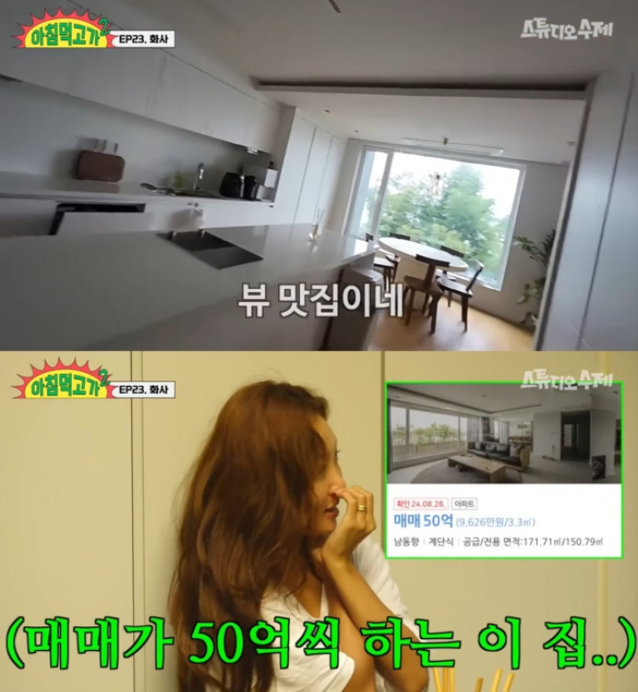 화사는 24일 공개된 웹 예능 '아침 먹고 가'에서 새로 이사한 한남동 다세대주택을 공개했다.