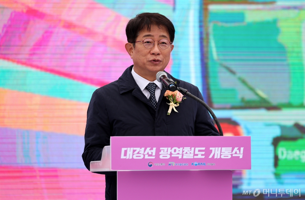 ![[대구=뉴시스] 이무열 기자 = 박상우 국토교통부장관이 13일 오전 대구 서대구역 중앙광장에서 열린 대경선 광역철도 개통식에서 축사를 하고 있다. 2024.12.13. lmy@newsis.com /사진=이무열](https://thumb.mt.co.kr/cdn-cgi/image/f=avif/21/2024/12/2024121510552839713_1.jpg)