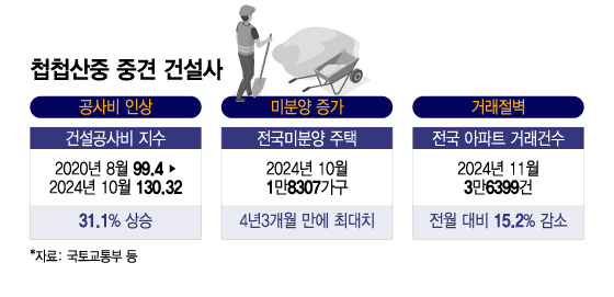 중견 건설사들이 심각한 경영난에 직면했다. 최근 몇 년 간 이어진 공사비 상승과 고금리 기조, 미분양 적체로 인해 건설사들의 수익성이 급격히 악화됐다. 첩첩산중에 놓인 건설업계 전반에 경고음이 울린다. 지난 6일 '시공순위 58위' 신동아건설의 법정관리 신청은 이같은 상황을 보여주는 사례다.