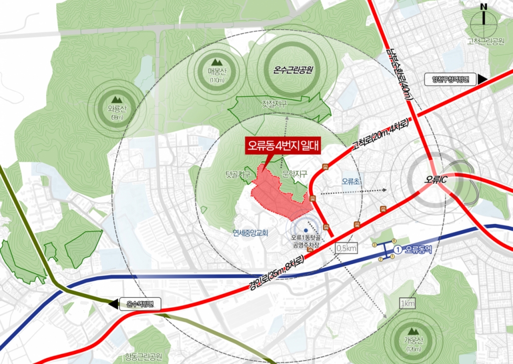 서울시가 오류동 4번지 일대 주택정비형 재개발사업의 신속통합기획을 확정했다고 4일 밝혔다. 매봉산 자락에 위치한 오류동 4번지 일대는 온수근린공원과도 인접해 고요, 평온하고 자연경관이 뛰어난 지역이라는 설명이다. 그러나 저밀의 용도지역, 급경사 등 제약으로 개발에서 소외되며 점차 노후화되고 있었다는 지적이 나왔다. 이번 신속통합기획이 확정돼 이 지역 일대는 도심 속 숲속 단지 오류로 거듭난다.5만5977.8㎡, 25층 내외, 약 1250세대 규모다.