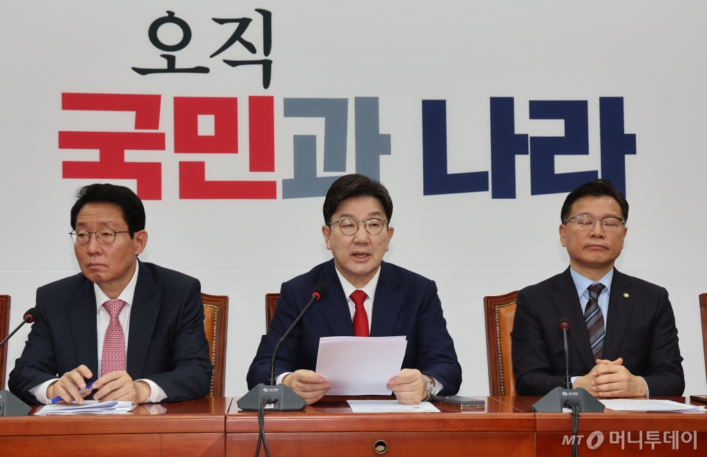 ![[서울=뉴시스] 권창회 기자 = 권성동 국민의힘 원내대표가 18일 오전 서울 여의도 국회에서 열린 원내대책회의에서 발언하고 있다. 2025.03.18. kch0523@newsis.com /사진=권창회](https://thumb.mt.co.kr/cdn-cgi/image/f=avif/21/2025/03/2025031813555790701_1.jpg)
