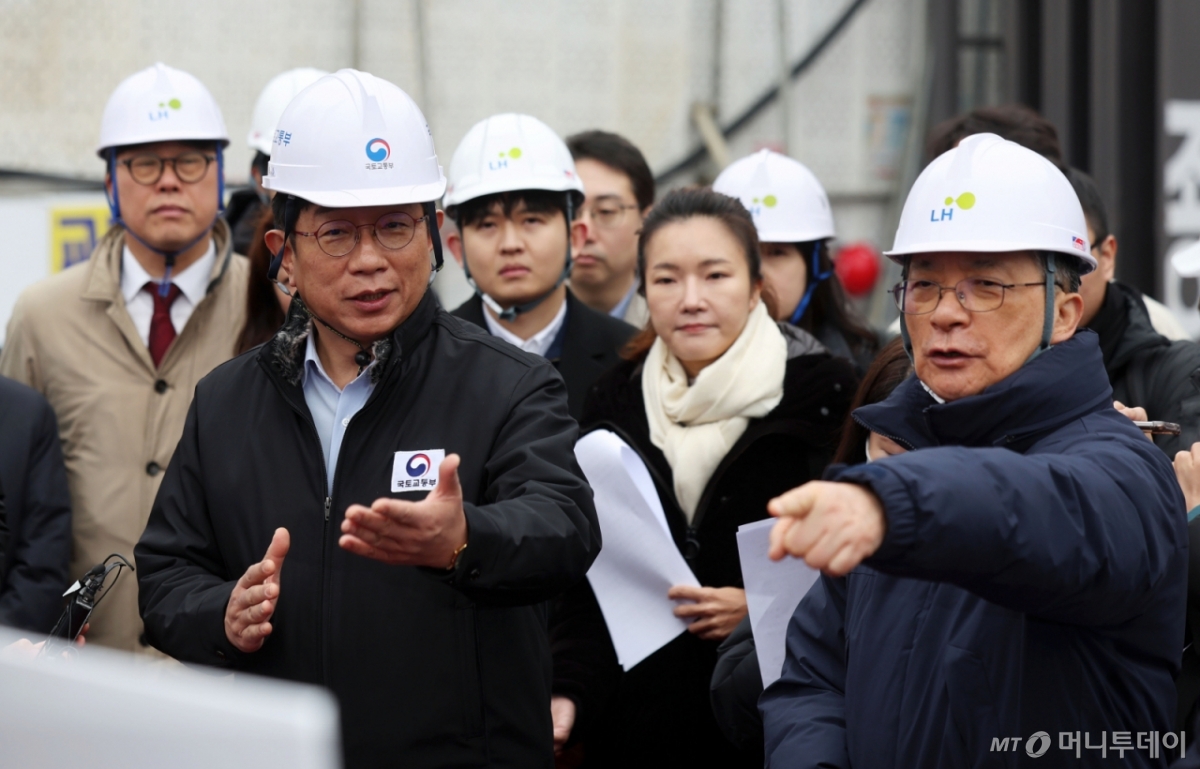 ![[서울=뉴시스] 홍효식 기자 = 박상우(왼쪽) 국토교통부 장관이 5일 서울 은평구 응암동 소재 신축매입임대 주택공급 현장을 방문해 이한준 한국토지주택공사(LH) 사장과 평면도를 살펴보고 있다. 이날 방문한 주택은 신혼부부 및 신생아 가구를 대상으로 공급할 예정이며, 20층 높이로 아파트 60가구에 오피스텔 12호로 지어진다. 시세 대비 저렴한 임대료로 6년 간 살아보고 분양여부를 선택할 수 있다. 2025.03.05. yesphoto@newsis.com /사진=홍효식](https://thumb.mt.co.kr/cdn-cgi/image/f=avif/21/2025/04/2025041109244966974_1.jpg)