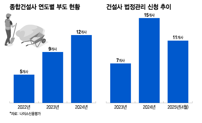 건설사 법정관리 신청 추이를 보면 2023년 7개사에서 지난해 15개사로 1년 새 배 이상 늘었다. 올해 들어서도 4월 현재까지 신동아건설, 삼부토건, 대우조선해양건설, 대저건설 등 11개사가 법정관리를 신청했다.