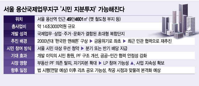 업계 관계자는 "도심 내 대규모 공공·민간 개발사업에 시민들이 참여하고 사업 수익 일부를 배당 등의 형태로 환원받는 구조가 이제 가능해졌다"며 "용산이 그 첫 시험대가 될 수 있다"고 말했다.